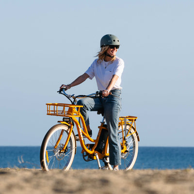 Designed for coastal cruising, the Gigi blends timeless style with modern performance. With a 52-volt battery system, it delivers impressive power and range, making every trip a breeze. Crafted with color-matched accessories, including fenders, a front basket, and a rear rack, the Gigi is as functional as it is fashionable. Brown leather-inspired accents on the saddle, grips, and tires add a sophisticated touch, elevating its timeless aesthetic.