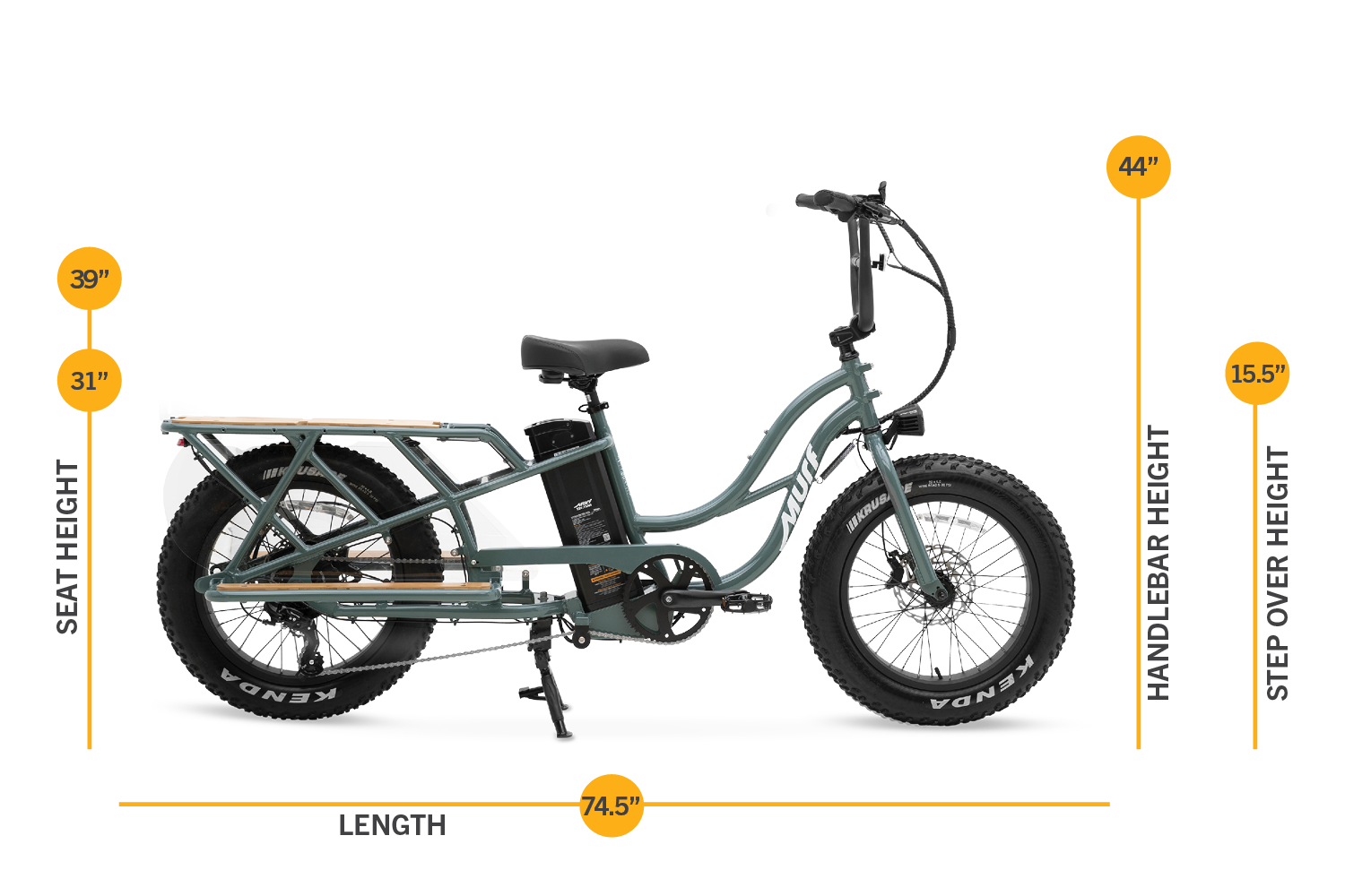 The Higgs Cargo fits riders from 4'11" to 6'4". See how different heights look on the bike.